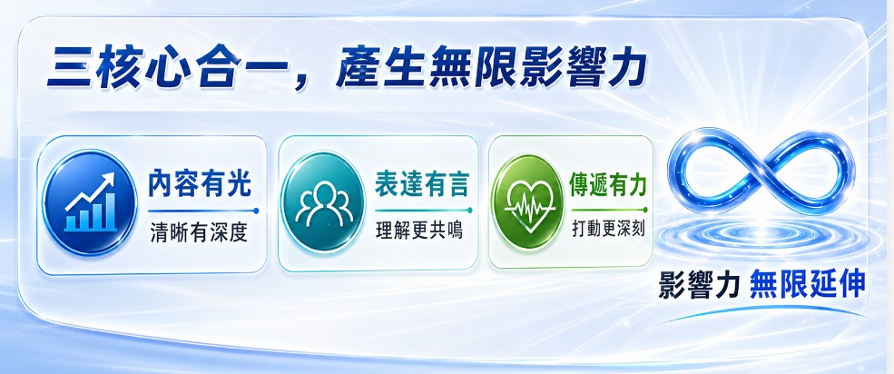 好的表達,不是講得越多越好,而是讓人聽得懂、跟得上、記得住。無論是簡報、報告、教學、提案或日常溝通,只要能用語言引導理解,就能減少誤解,提高溝通效率。